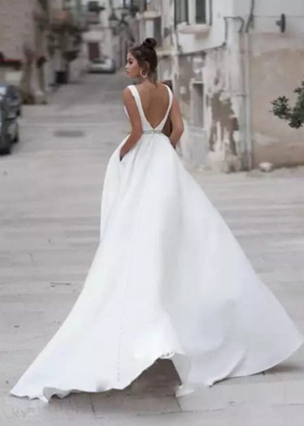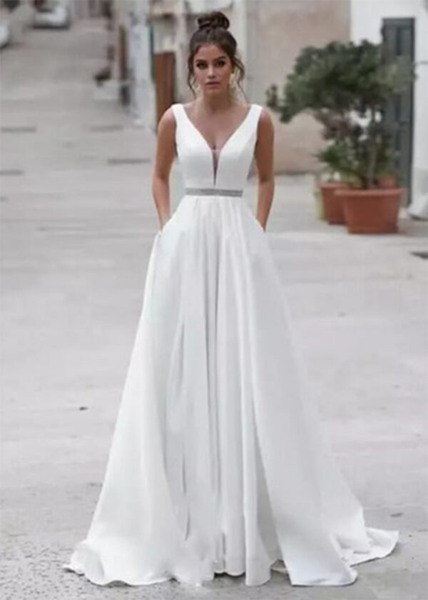 Vestido De Noiva Decote V Na Costa E Leve V Na Frente C Bolso