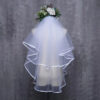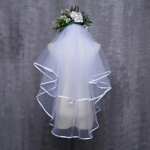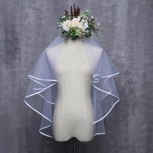 Véu de noiva, comprimento Ombro com fita na borda estilo tule francês